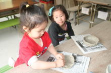 手作り教室では、個人の場合朝9時から午後3時までの間いつでも申し込みできます。団体客は予約が必要です。作成方法は「手ひねり」と言ってロクロを使わず粘土を積み上げて作る方法です。子供でも粘土遊びの感覚でつくる事ができます。ロクロ使用は予約が必要になります。