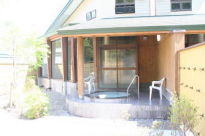 | 大浴場の硫黄のたちこめる浴槽につかって眺める情緒豊かな自然景観は、格別なものがあります。運が良ければキジ、カモシカなども見えることもあります。数年前には露天風呂も常設され澄んだ空気と緑風は最高です。でも夏はアブに注意です。大浴場は二階にあり、この少し小さめの浴場は一階カウンター前、廊下奥にあります。お湯は源湯を使っています。大浴場が出来る以前はこの浴場に一日200人も押し寄せ大混雑したそうです。 |